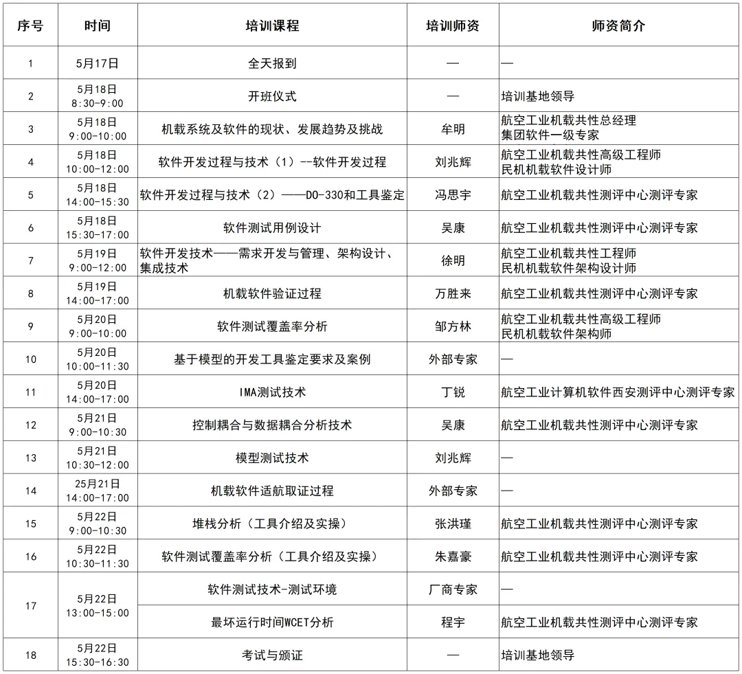 培训师资主要来自集团首席技术专家、航空工业机载共性相关技术专家等(详见附件 1)。