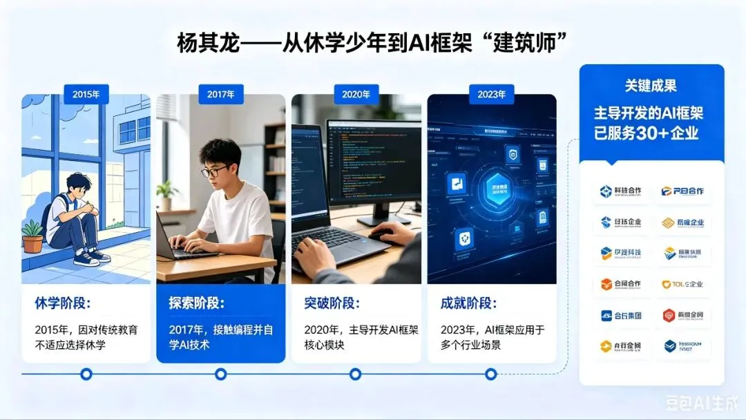 四、现实样本:杨其龙——从休学少年到AI框架“建筑师”