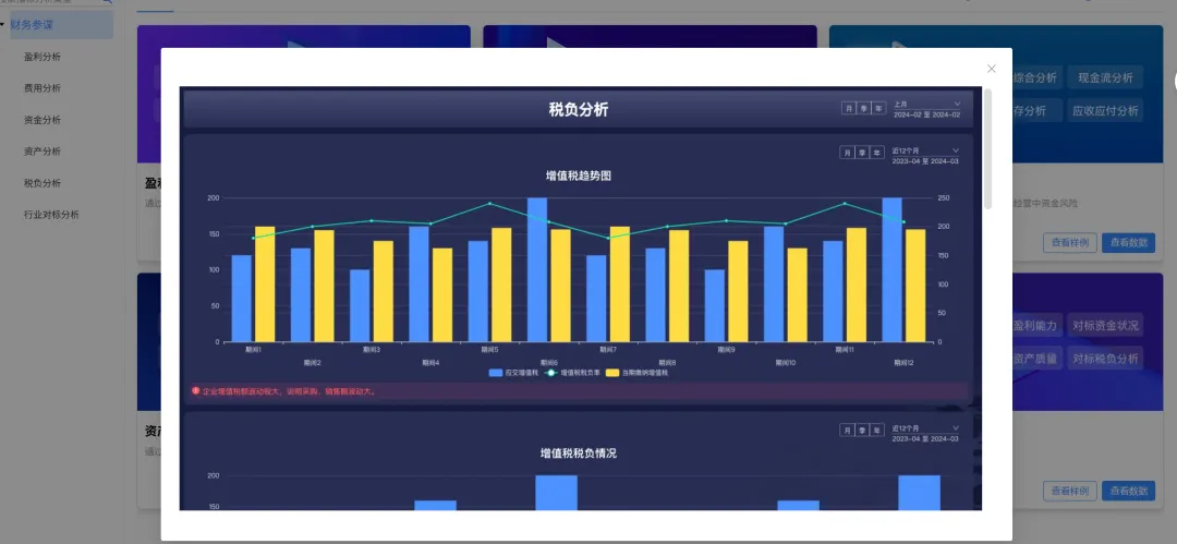 分析财务报表,利润表、资产负债表、现金流量表,按照报表进行税务合理化,降低企业成本,从进项发票的管理和销售发票的开具,最后汇算清缴和增值税以及企业所得税申报。一键申报税软件打通,无需手动上传报表填数据,就能完成报税工作。