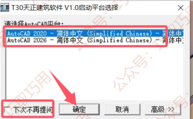 ![]() ![]() ![]() ![]() ![]() ![]() ![]() ![]() ![]() ![]() ![]() ![]() ![]() 14.可以勾选下次不再提示,这样每次打开这个提示窗口就不出来了,点击“确定”注:如果是多个CAD版本用的话,这里建议不勾选,这样好选择版本 ![]() ![]() |