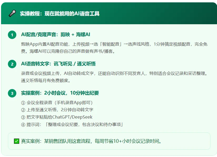 声音AI正在普及,配音、会议转写、播客制作——普通人都能用到。