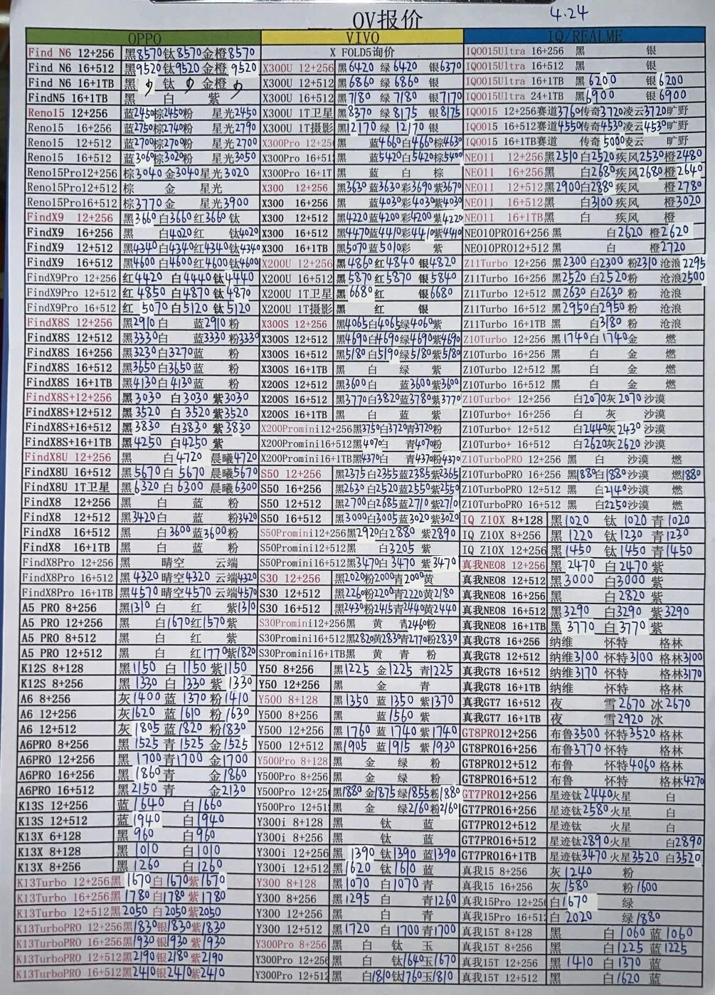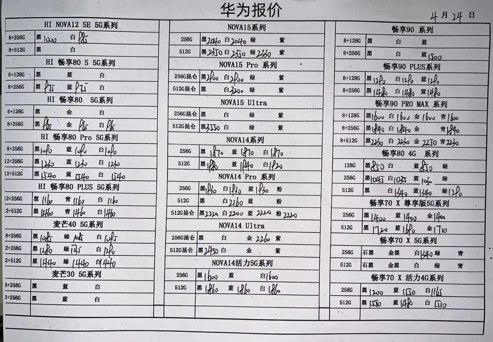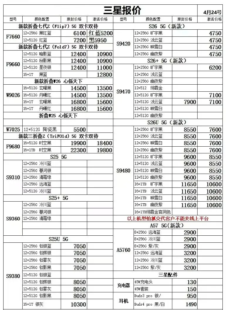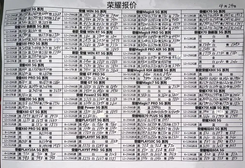 260425安卓手机报价 安卓国行购机说明 : 1、报价0-2000的,零售价=报价+150顺丰包邮 2、报价2001-7000的,零售价=报价+200顺丰包邮; 3、报价7001以上的,零售价=报价+300顺丰包邮 售后保障:可在官方售后保修1年! 购机方式:仅支持打款购机:联系客服打款购机,客服微信:sjt9016 华为/荣耀 OPPO/vivo/真我 小米/一加/红魔/黑鲨 华为平板手表和三星报价不常更新 8