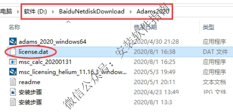 6、你会发现安装文件夹内生成了一个license.dat文件,注意它在电脑的位置,一会需要用到它