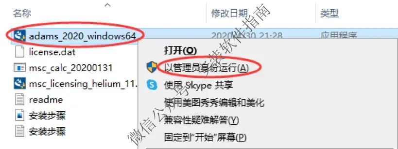 17.返回开始解压出来的安装文件夹,右点dams_2020_windows64,并 以管理员身份运行