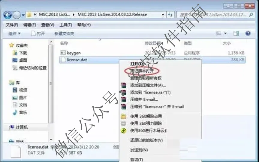 1、msc adams2015解压,然后我们打开license文件夹,打开“MSC.2014 LicGen.2015.07.15.Release”,右键点“license.dat”用记事本打开。