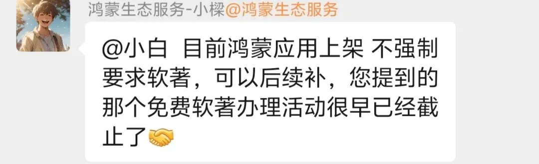 重点是——鸿蒙现在允许先上架,软著可以后补。
