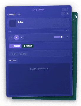 正如上图所见就是这个软件目前的全貌的,看起来就是两张卡片交叠在一起的,这个创意是我跟AI讲解了无数遍之后他才理解然后做出来的,分为前景音乐卡片和背景音乐卡片,整体来说就是两个音乐播放器纠缠在一起了,要切换的话可以点击后面卡片,他们就交换位置了,具体效果可以看下下面的动态图:
