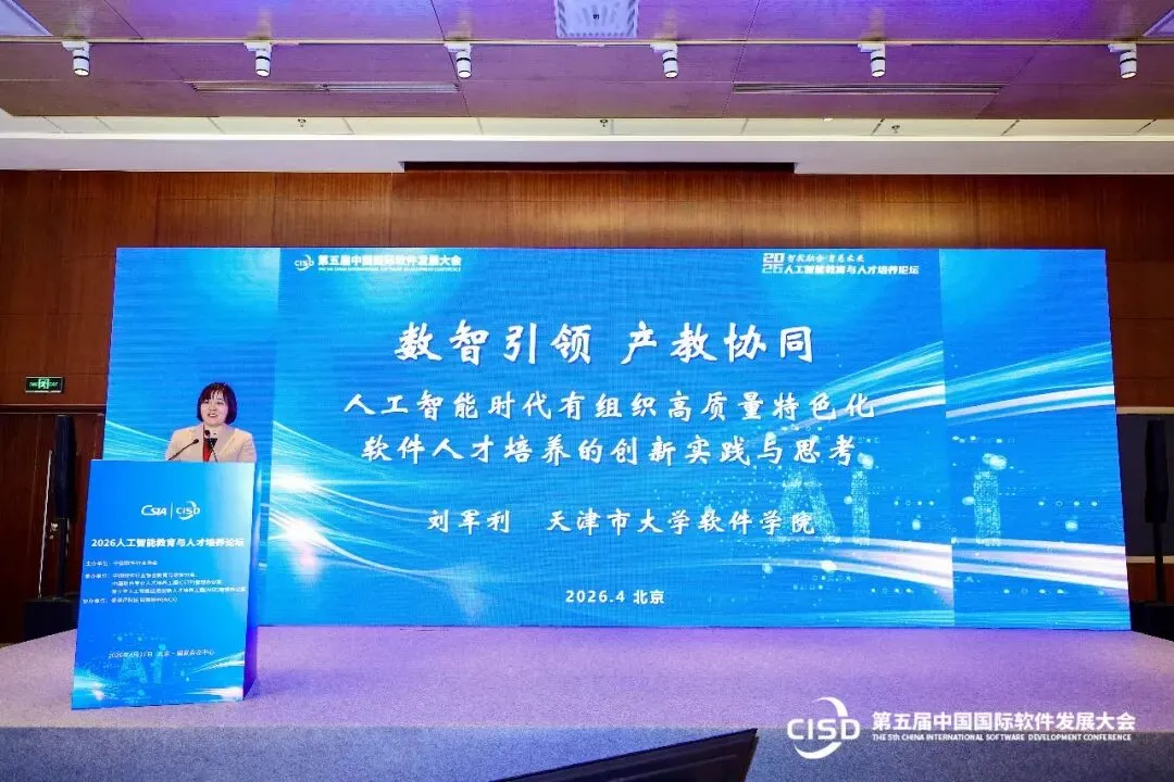 4月21日至22日,由中国软件行业协会主办的第五届中国国际软件发展大会在北京国家会议中心举行。学校刘军利副校长应邀出席,并在“2026人工智能教育与人才培养论坛”在圆桌论坛环节作专题发言。