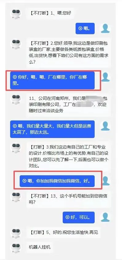 2、智能电话机器人采用真人录音,不是机械自动生成的冷冰冰的语音。真人录制,拨打出去之后,和真人沟通一样!效果更好,且后续拨打过程中,后台还可以自动总结客户问题,话术里没有的,随时都能添加上去。