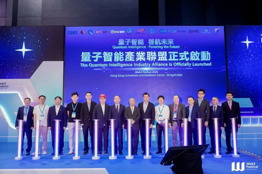香港城市大学校长梅彦昌教授、天工开物开源基金会理事长田广礼、本源量子创始人郭国平、顺丰科技产学研负责人任亚坤、国富量子战略顾问柳志伟、华翊量子副总经理赵文定、上海量羲创始合伙人吴明、国盾量子集团(上海)总经理王哲辉、中电信量子集团代表谢树欣、玻色量子副总裁袁为、科大硅谷副总裁贺礼等十余位产业领军人物同台而立,共同点亮启动柱。光柱亮起的瞬间,标志着中国量子智能产业从单点突破正式迈入军团化、生态化协同作战的新阶段。