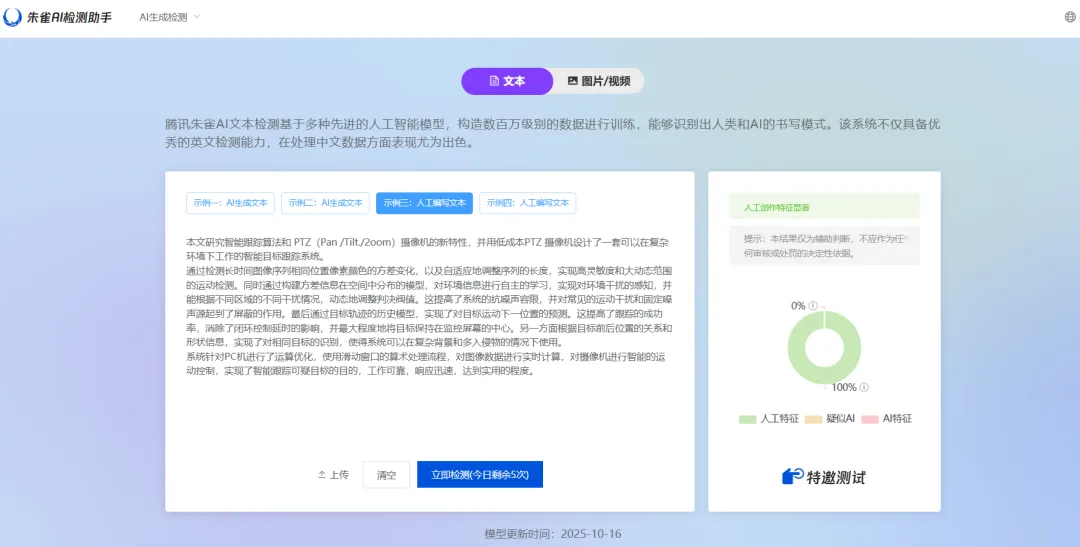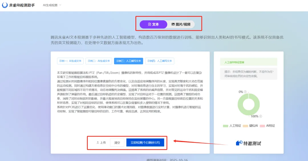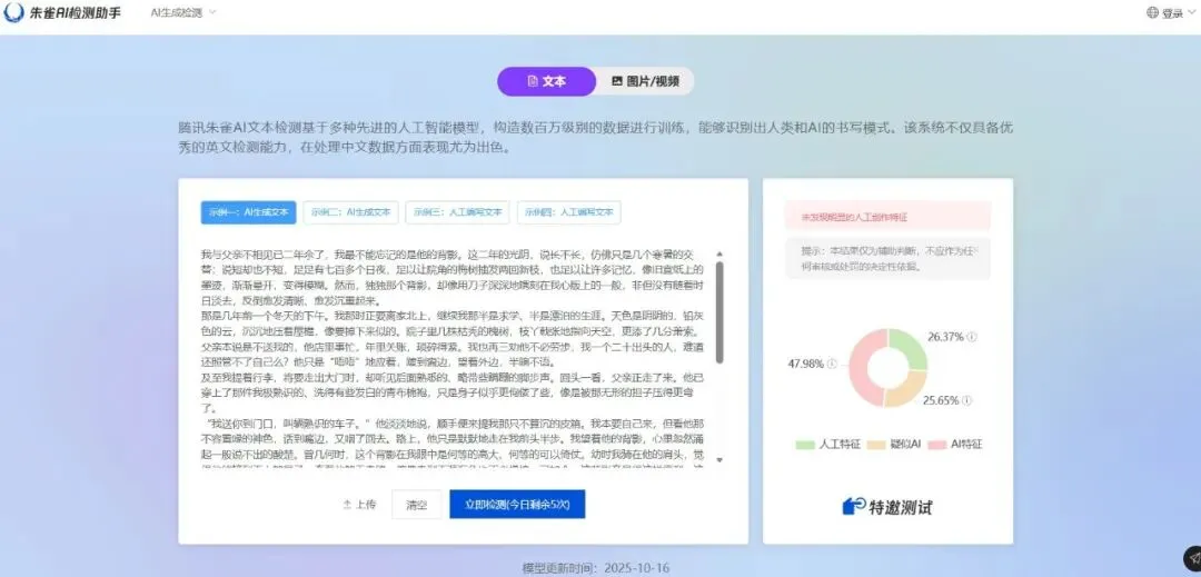 朱雀AI检测官网:https://matrix.tencent.com/ai-detect/