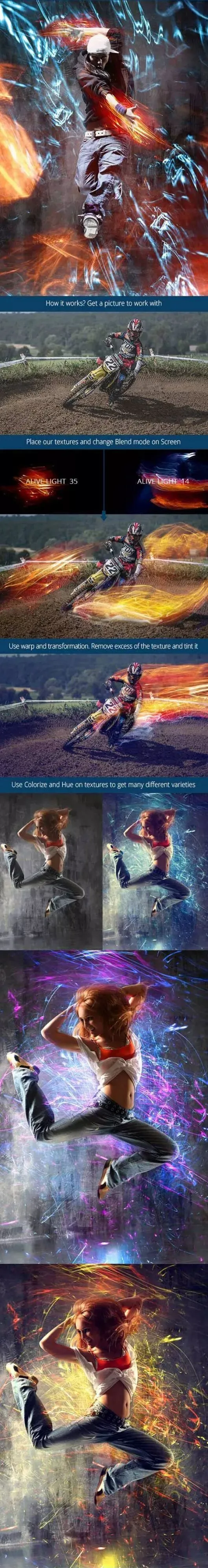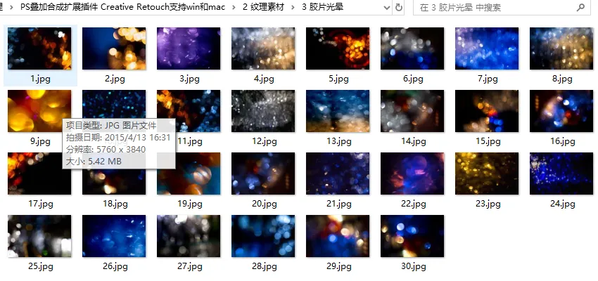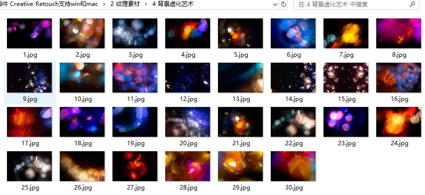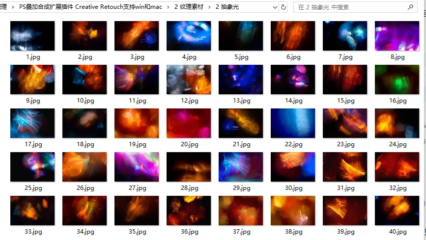 PS叠加合成扩展插件 Creative Retouch支持win和mac,包含150张光效纹理素材
