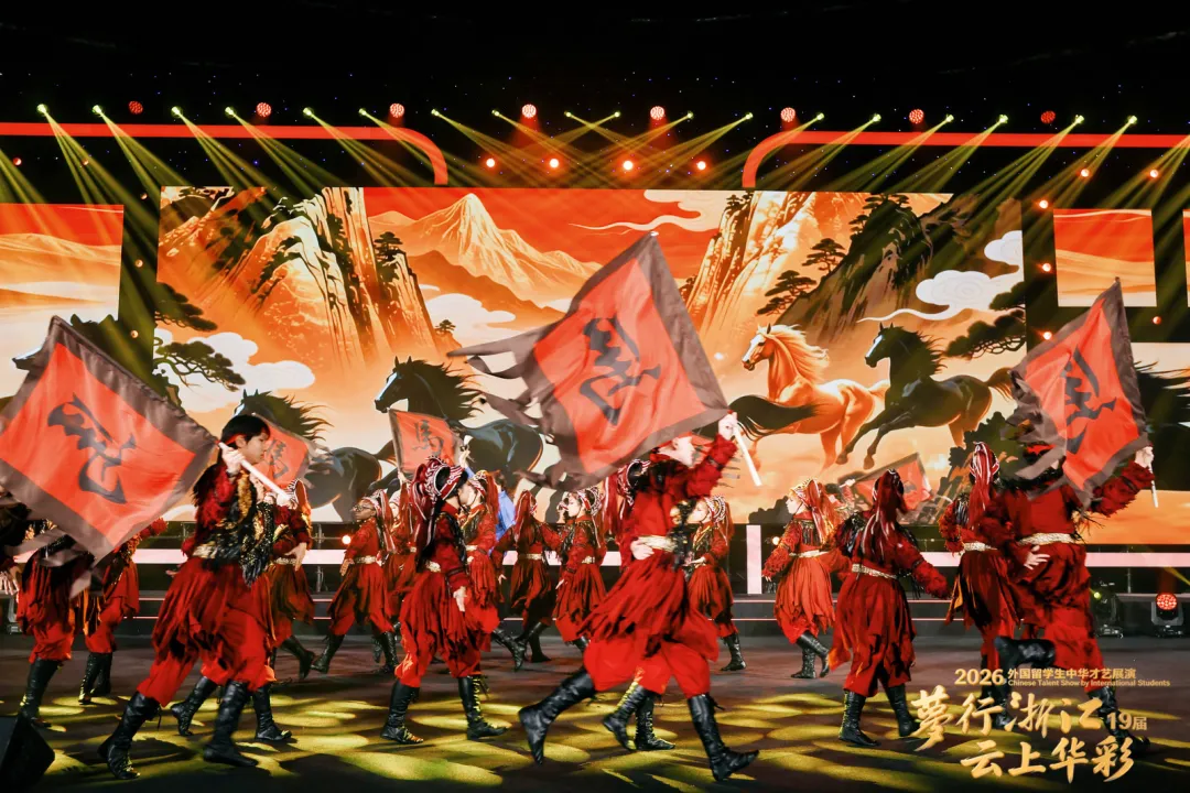 浙江工业大学的舞蹈《万马奔腾》则以磅礴气势展现了马年新春的勇敢与力量。来自马达加斯加的留学生李莎动情地说:”中华文化就像一个百宝箱,每次打开都有惊喜!”