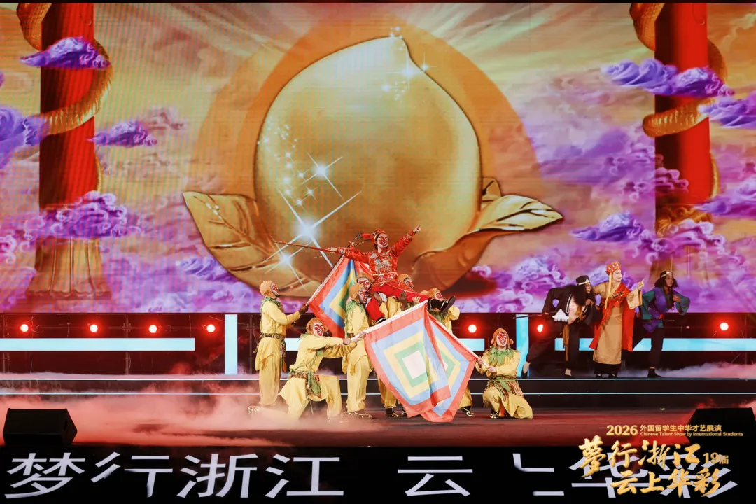 浙江理工大学的歌舞《留学“浙”里》作为压轴节目,用”桥”的意象诠释了留学生作为文化之桥连接中国与世界的使命。