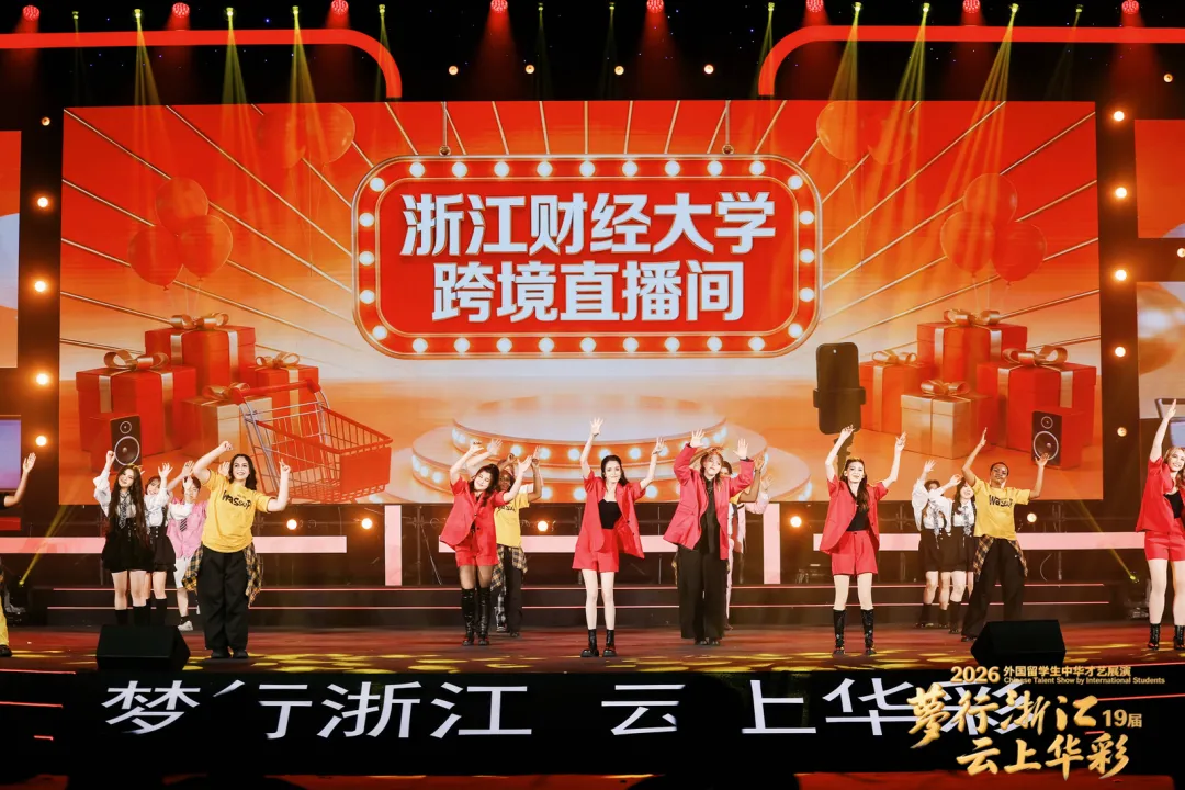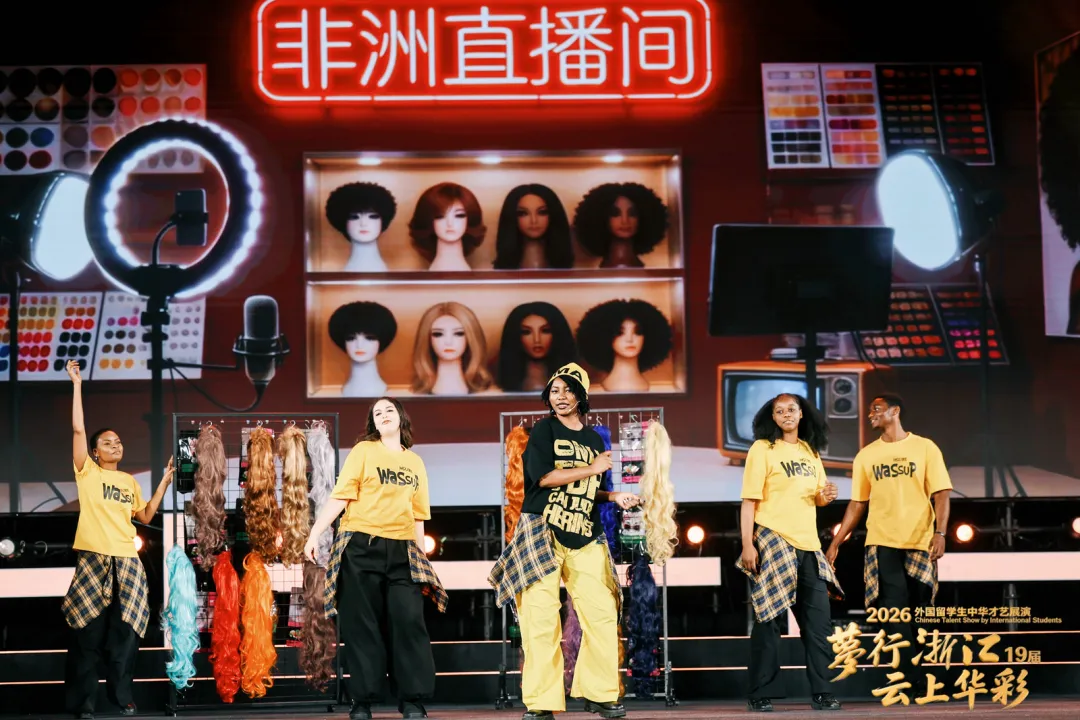 浙江财经大学的情景剧《跨境直播间》聚焦当下火热的”跨境电商直播”,展现了外国留学生当主播、把中国货卖到全世界的创业故事。来自美国的叶明凯笑言:”这剧情我太熟了!我的室友就在做跨境电商,天天对着镜头说’Buy it now!'”