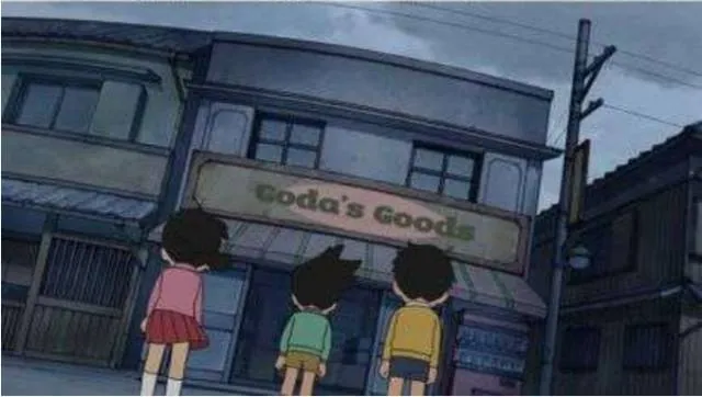 3.胖虎家的商店也改成英文招牌,超级国际化!隔壁的荞麦面点的招牌竟然直接被涂掉了?