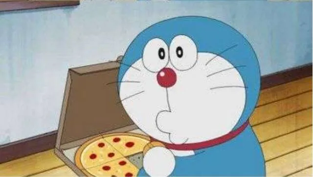 6.这个也很奇妙!原本哆啦A梦哭着贴OK绷的画面,竟然被改成偷吃披萨…这到底为什么啊?