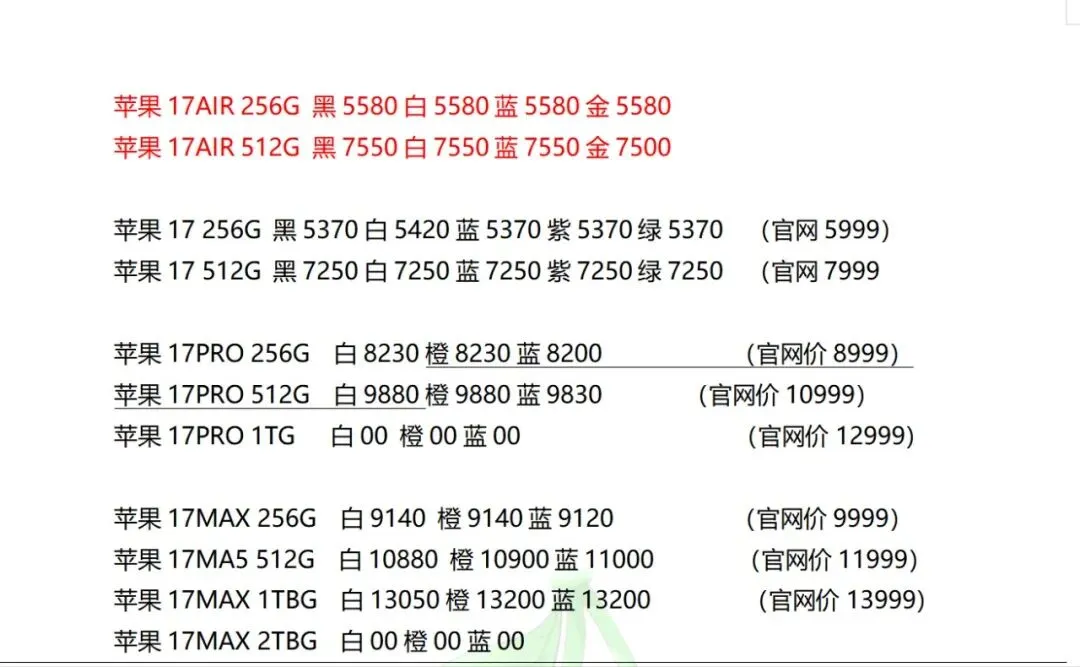 小米17PROmax 16+1TB黑白5950绿紫6000