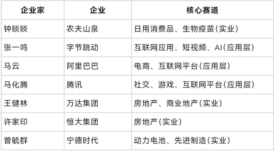 从房地产的许家印、王健林,到制造业的曾毓群、宁德时代,再到消费品的钟睒睒,中国的财富神话始终围绕看得见、摸得着的实物资产展开。