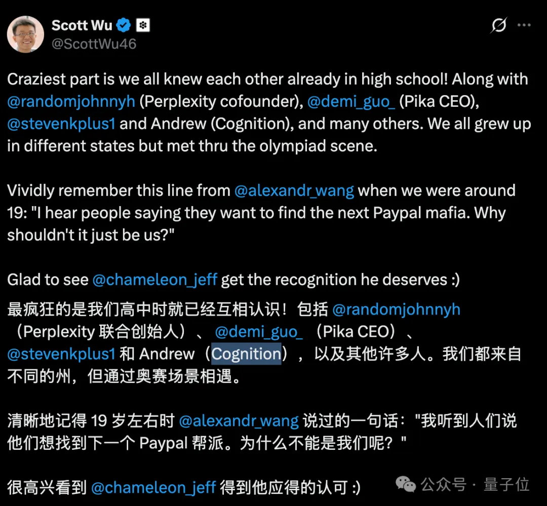 不仅如此,Scott Wu本人还现身评论区,坦言他们这群人其实早在HRT之前就已经因为奥赛结识……