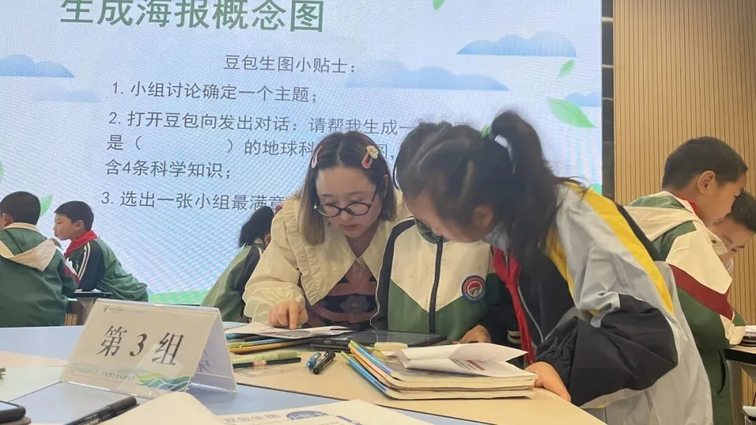吴夏希老师执教《地球是我们的家园》这一课,紧扣世界地球日开展教学。借助AI数字人导入任务情境,激发学生参与热情;运用AI星球对比工具直观探究地球知识,辅助构建地球小档案;利用AI生成概念图优化海报设计,提升创作效率。全程融合智能技术与科学探究,让学生在AI赋能下完成科普海报构思,在实践中树立保护地球的意识。