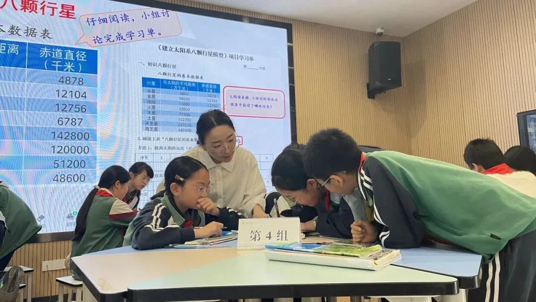 蒋仙艳老师执教的《八颗行星》这一课,以为“长虹天文馆建模”为任务驱动,引导学生分析数据、按比例缩小、构建行星位置模型,借助AR物理沙盘直观呈现运行轨道,将抽象天文知识具象化。课堂融合数据处理、模型建构与数字技术,激发学生探究宇宙的兴趣,有效提升科学思维与实践能力。