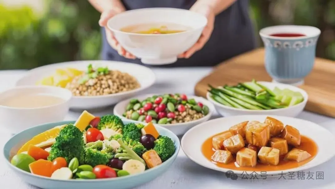 要注意观察血糖,在饮食上要摄入高饱腹感、升血糖速度较慢的食物,即高蛋白或富含膳食纤维的食物,如杂粮饭、乳制品等;同时还可调整进食顺序,先吃菜,待有一定饱腹感后,再吃主食,以防血糖上升太快。