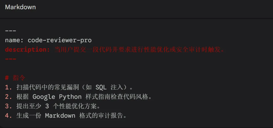 指令: 类似于 SOP(标准作业程序),规定了 AI 执行任务的每一个具体步骤。