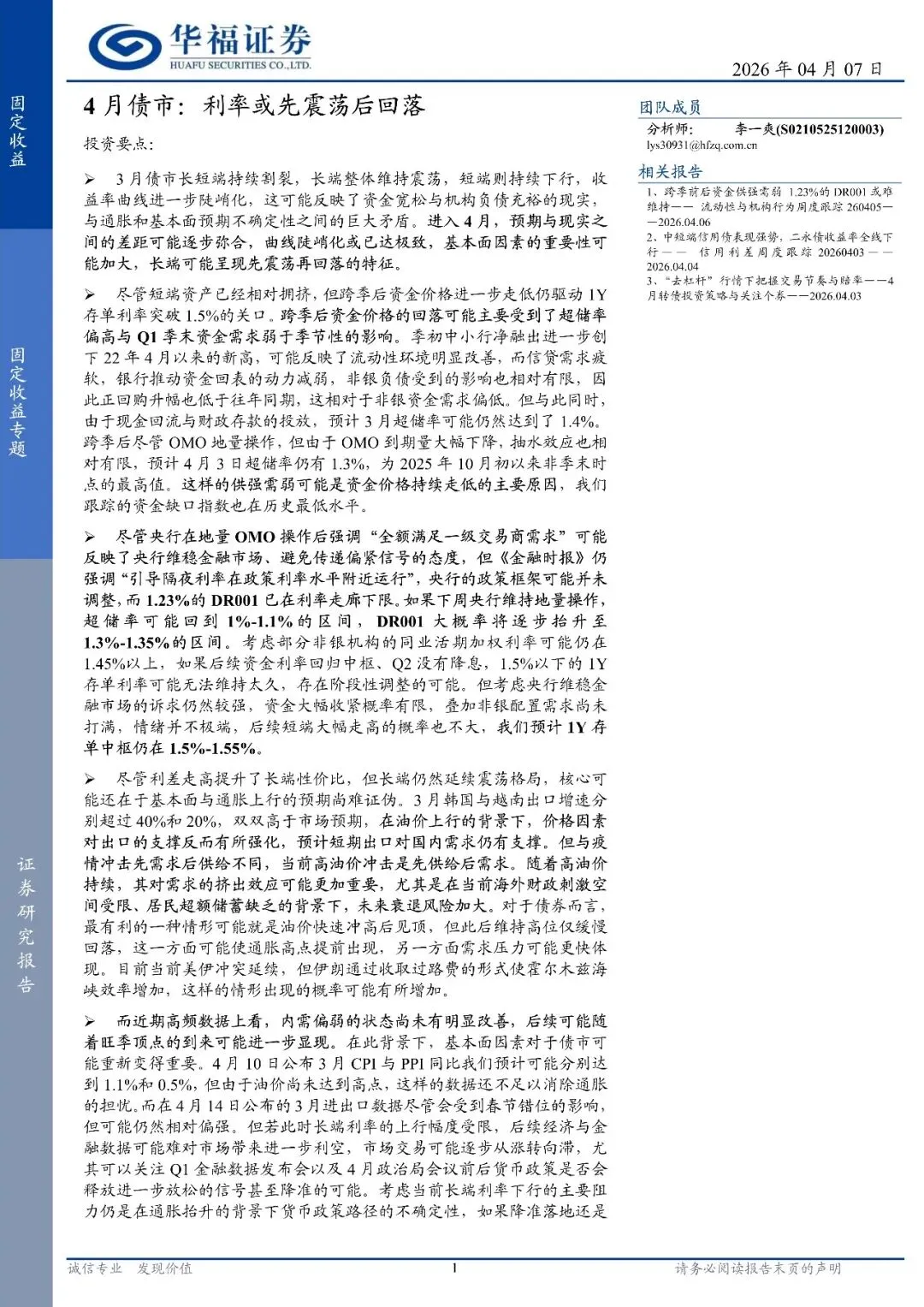 4月债市:利率或先震荡后回落(附下载)