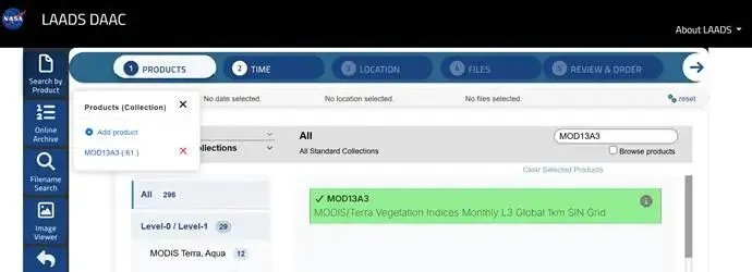 2、进入官网(https://ladsweb.modaps.eosdis.nasa.gov/search/)并登录,查找所需数据。