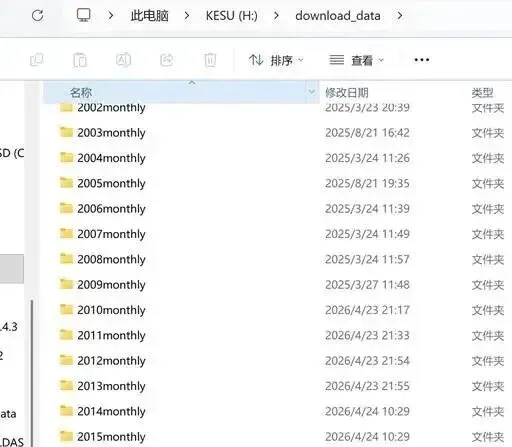 4、下载好的MODIS数据,这里是月尺度的数据,格式为hdf格式