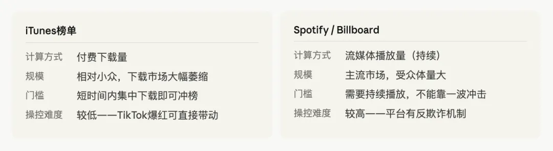 在继续之前,有一件事必须说清楚——很多人根本不知道iTunes榜单和Spotify榜单、Billboard榜单是三件完全不同的事。