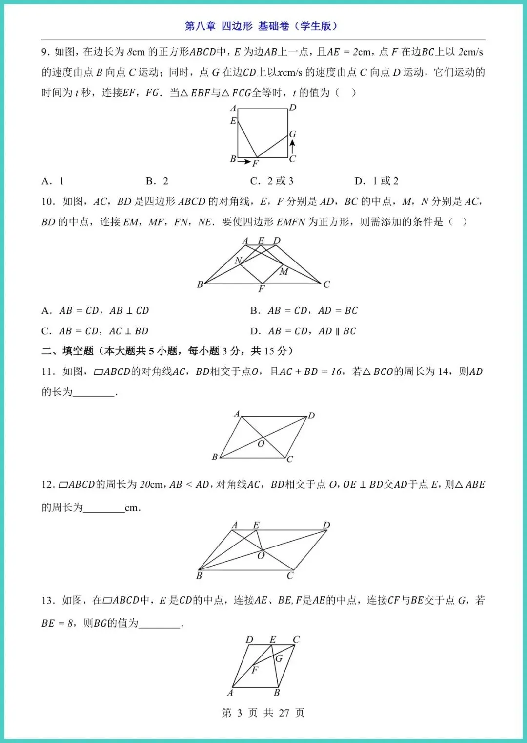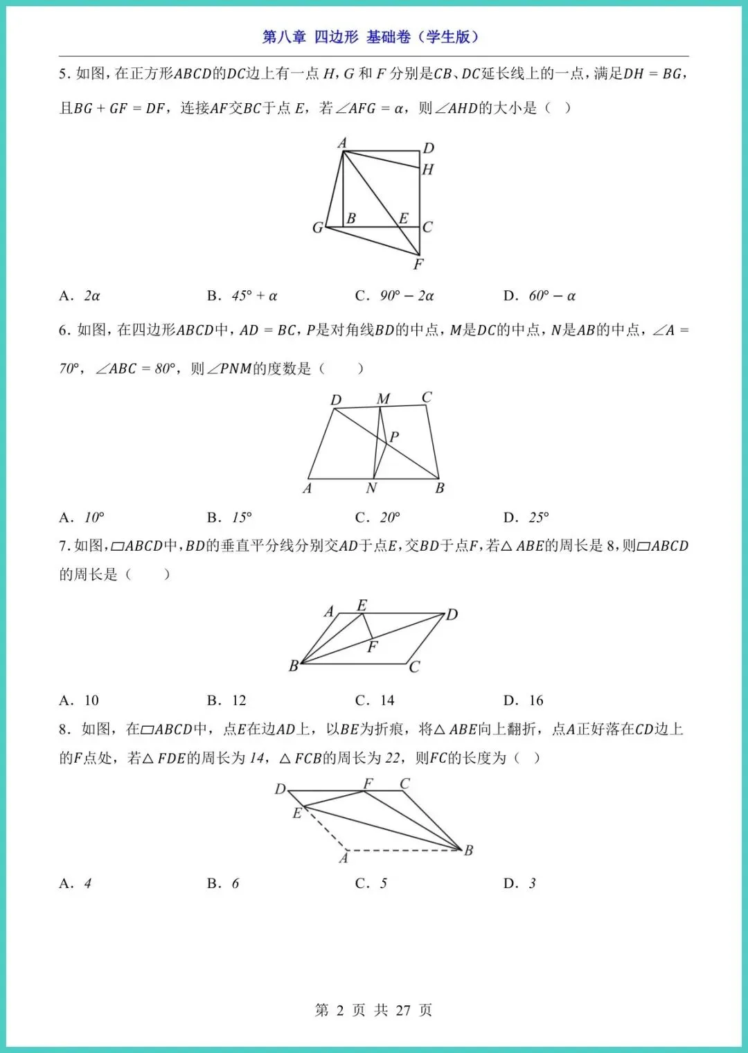 【免费下载】八年级(下)数学第8章四边形_基础卷(青岛版) | PDF完整高清电子版可打印
