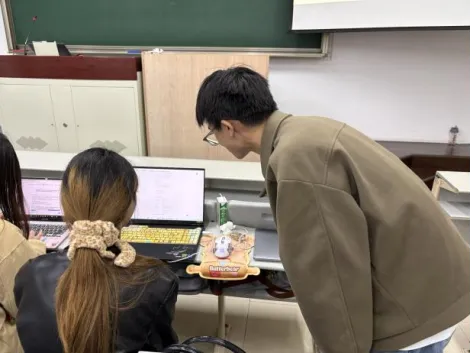 在现场实操环节,同学们积极踊跃,纷纷在电脑上探索腾讯WorkBuddy(国产“龙虾”)的使用方法。魏嘉孝耐心引导大家按步骤安装软件,并演示如何利用指令生成网页和小程序。最后,他还贴心地向大家分享了安全保障相关指令,帮助同学们在使用AI的过程中更好地保护个人信息安全。