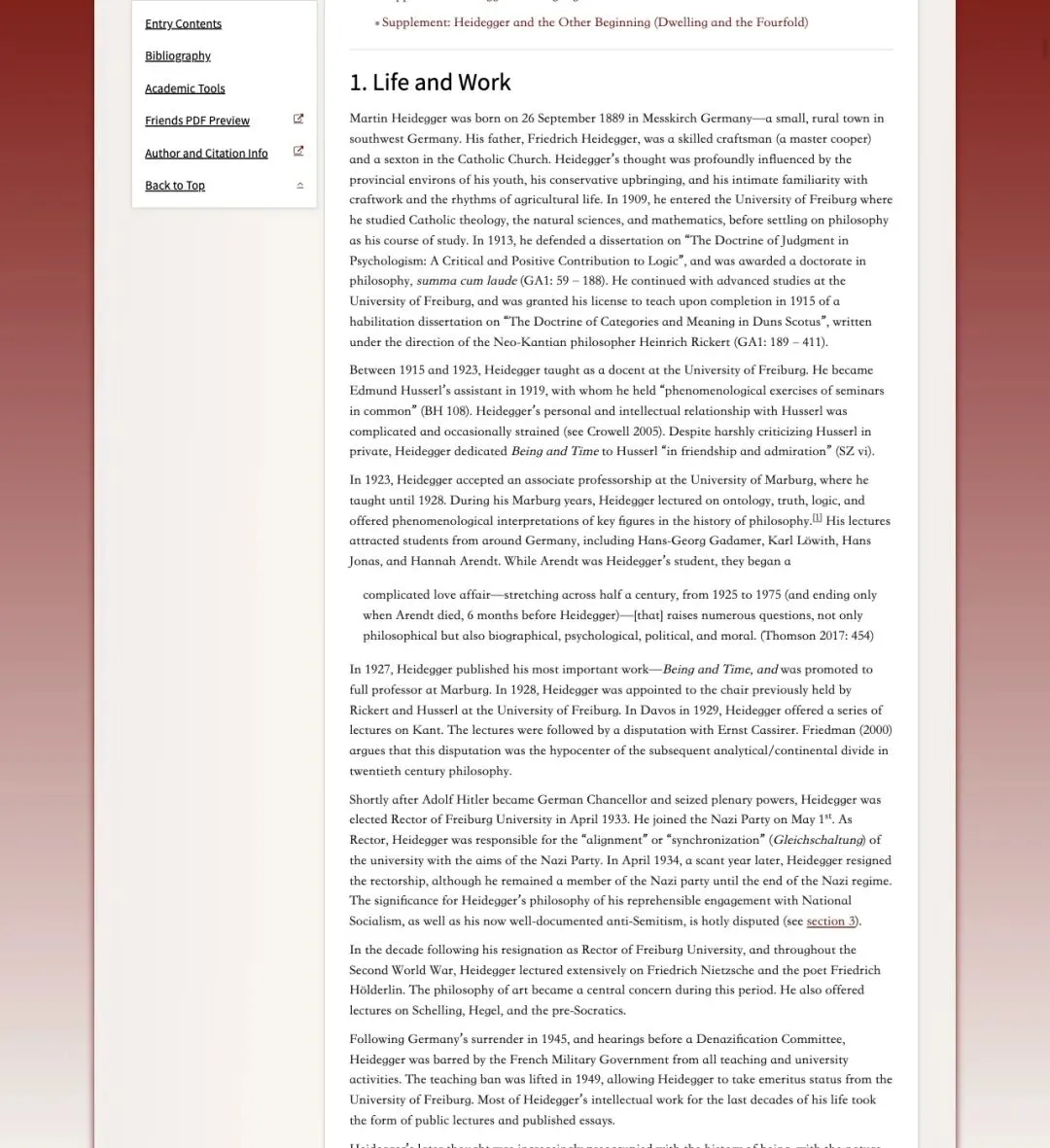 ▲ 斯坦福哲学百科 Heidegger 词条,学术界对这些概念的标准解释