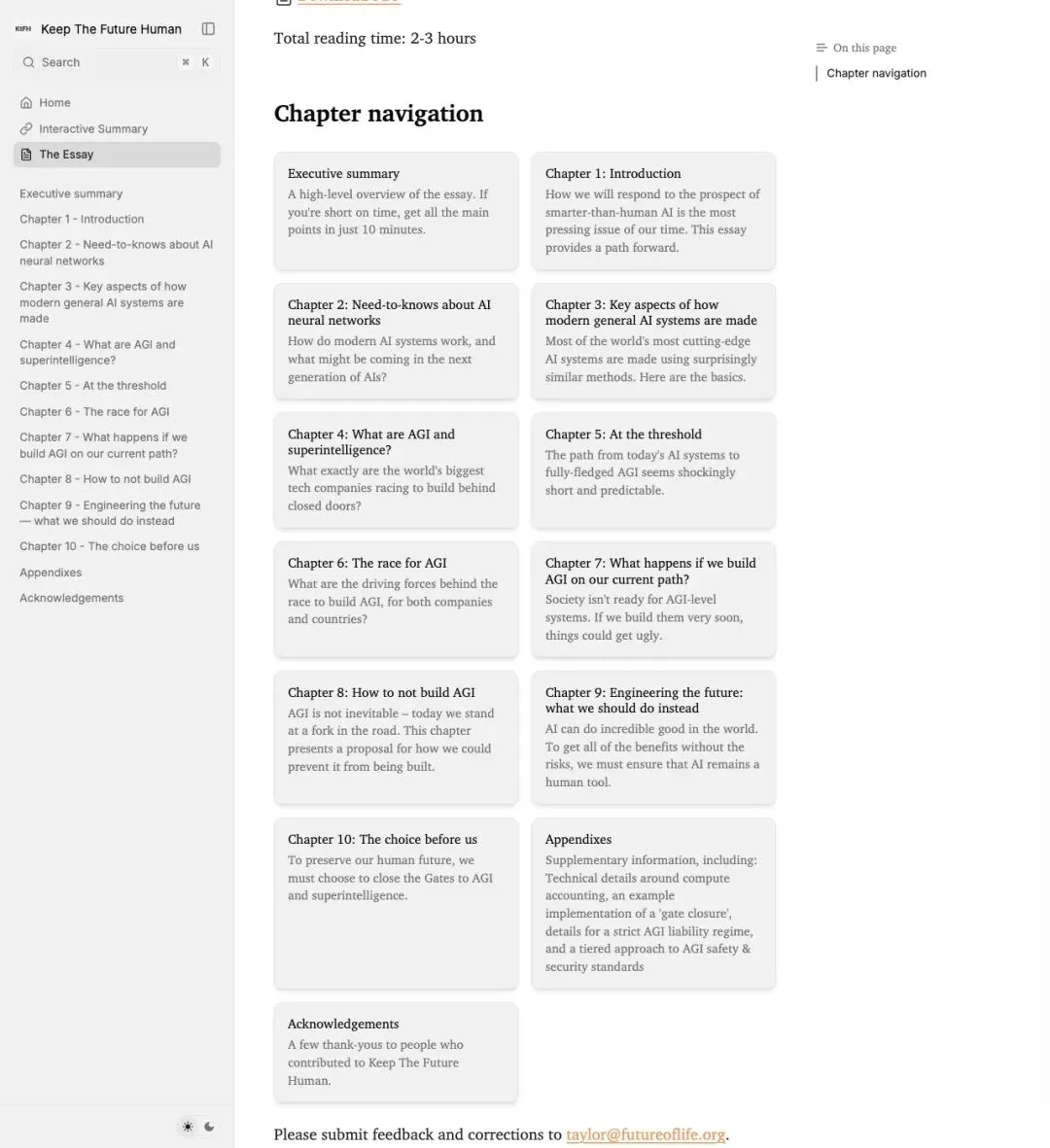 Keep The Future Human是一个专门呼吁限制AGI发展的倡议网站,他们的核心主张只有一句话: