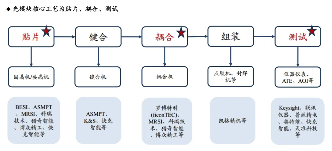 2.1 光模块封装测试的核心工艺为贴片、耦合、测试