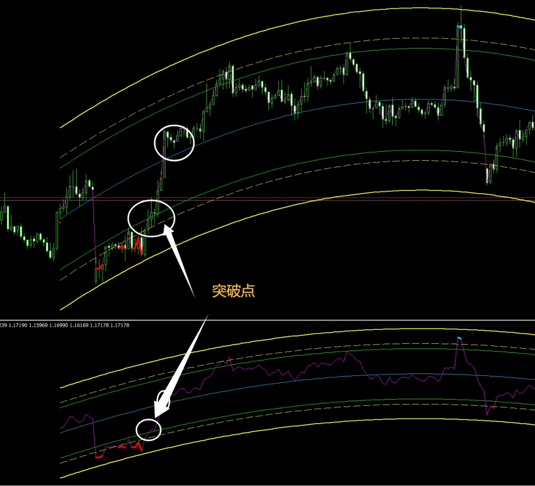 - 趋势加速:当价格强势突破上轨(在上升趋势中)或下轨(在下降趋势中),并伴随成交量放大,可能意味着原有趋势正在加速。