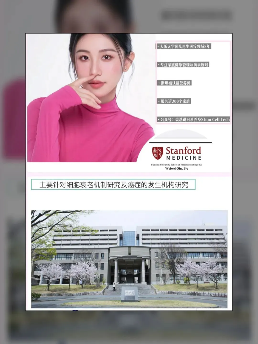 嗨,朋友们,我是Miki,来自与日本大阪大学再生医疗领域,专注日本细胞抗衰,疾病治疗和康养。