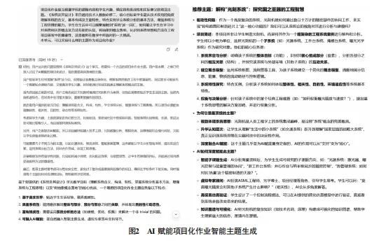 教师在明确项目主题时, 如图2所示, 在提示词中限定项目化作业的内容及培育学生的核心目标, 结合AI应用进行了智能主题生成。光刻机作为集成电路产业中的核心装备, 其研发过程需要多学科融合, 并开展复杂的工程实践, 其超高复杂度与学生有限的知识储备之间存在矛盾。但正因如此, 它为解构复杂工程问题、 培养系统性思维与跨学科整合能力提供了极具价值的教学情境, 是通用技术课程开展项目化学习的有意义载体。