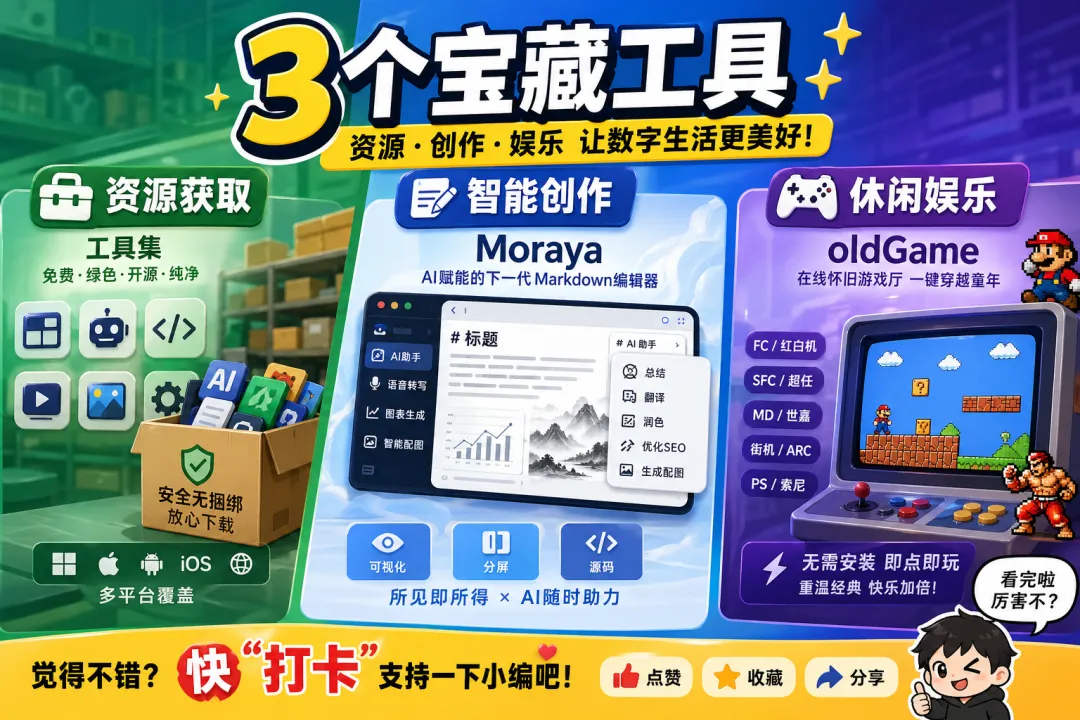 希望这三个分别聚焦于“资源保障”、“智能创作”和“休闲治愈”的工具,能帮你更从容、更愉悦地应对数字生活的方方面面。工具的价值,在于让生活和工作都变得更美好。