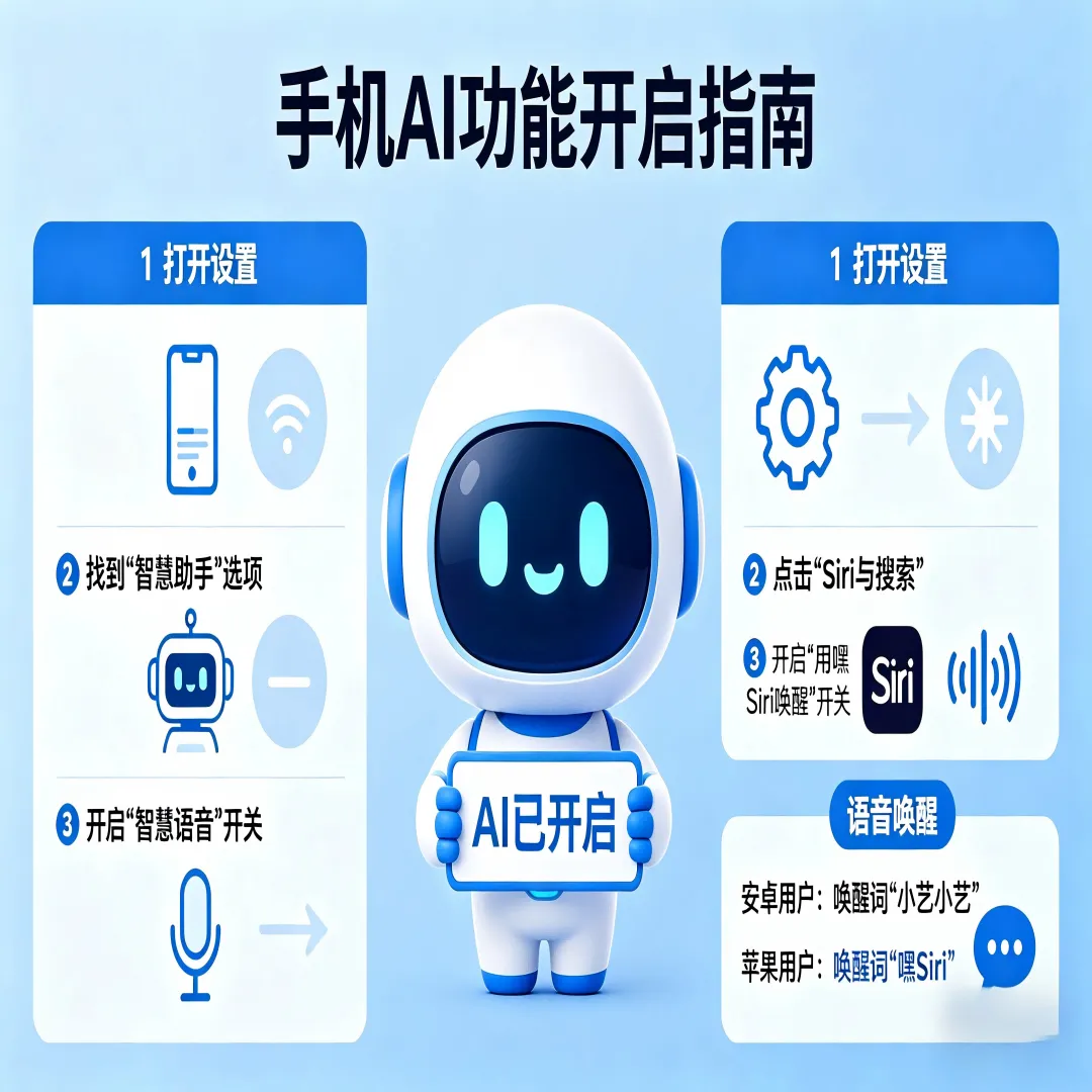 ✅ 苹果用户:设置→Siri与搜索→开启「建议快捷指令」 嫌麻烦的直接对着语音助手喊「小X小X,打开AI功能」就行,X对应你家手机助手的名字:小爱、小艺、Siri都好使。