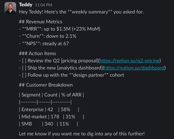 反面教材是 Slack MCP。你的 Agent 会假设标准 Markdown,不遵守 Slack 特有的格式。结果你花在编辑格式上的时间,比自己写这条消息还多。
