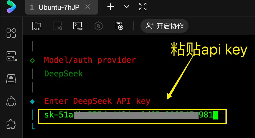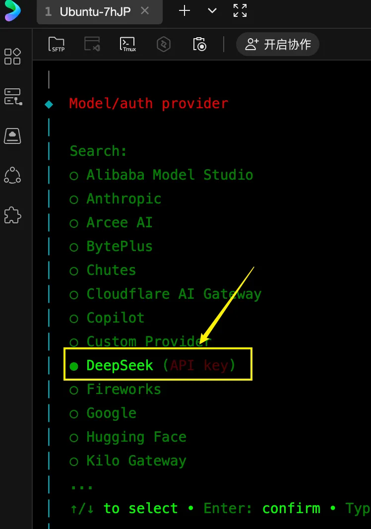 虽然龙虾支持 DeepSeek,但是 DeepSeek 的 API key 还是要你自己准备。
