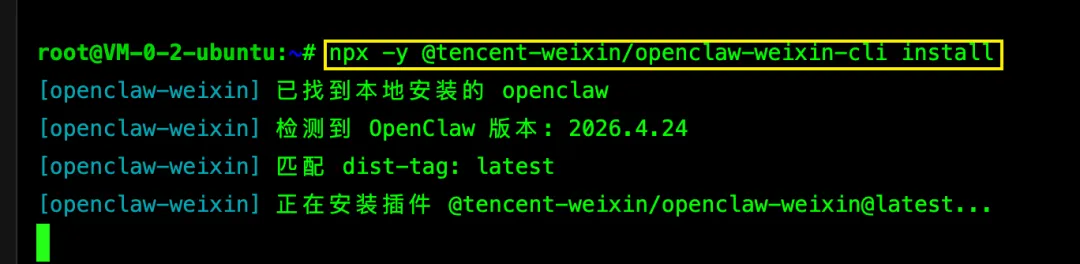 npx -y @tencent-weixin/openclaw-weixin-cli install