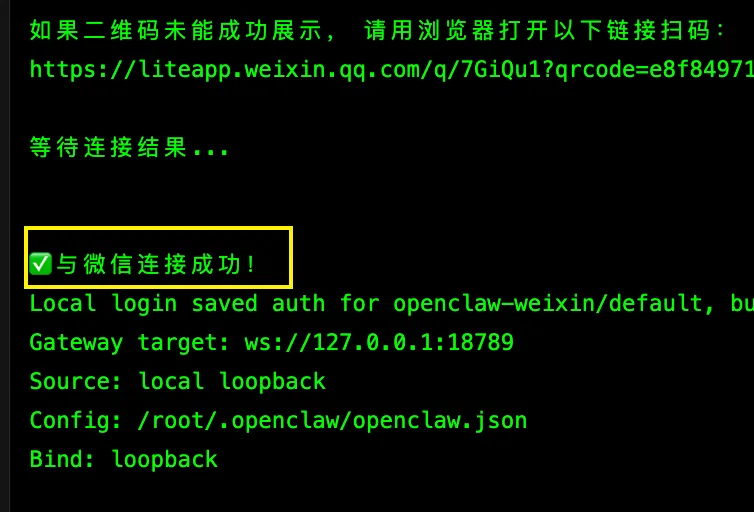 安装完成后,终端会生成一个登录二维码。