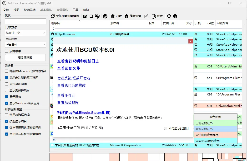 ⚠️ 温馨提示:BCU功能强大,但大家一定要合理使用哦!工具仅限合法清理自己电脑上的软件,卸载系统关键组件(比如微软自带的核心服务)前,务必仔细确认,避免误删导致电脑无法正常运行;清理残留时,对于“可疑”的项目,建议手动核对后再删除,确保不影响其他软件正常使用。