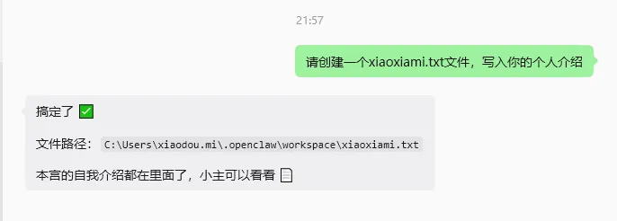 接下来我让它同样也创建个文件,写入自己的介绍,再让它删除这个文件,看看是不是能正常执行任务。