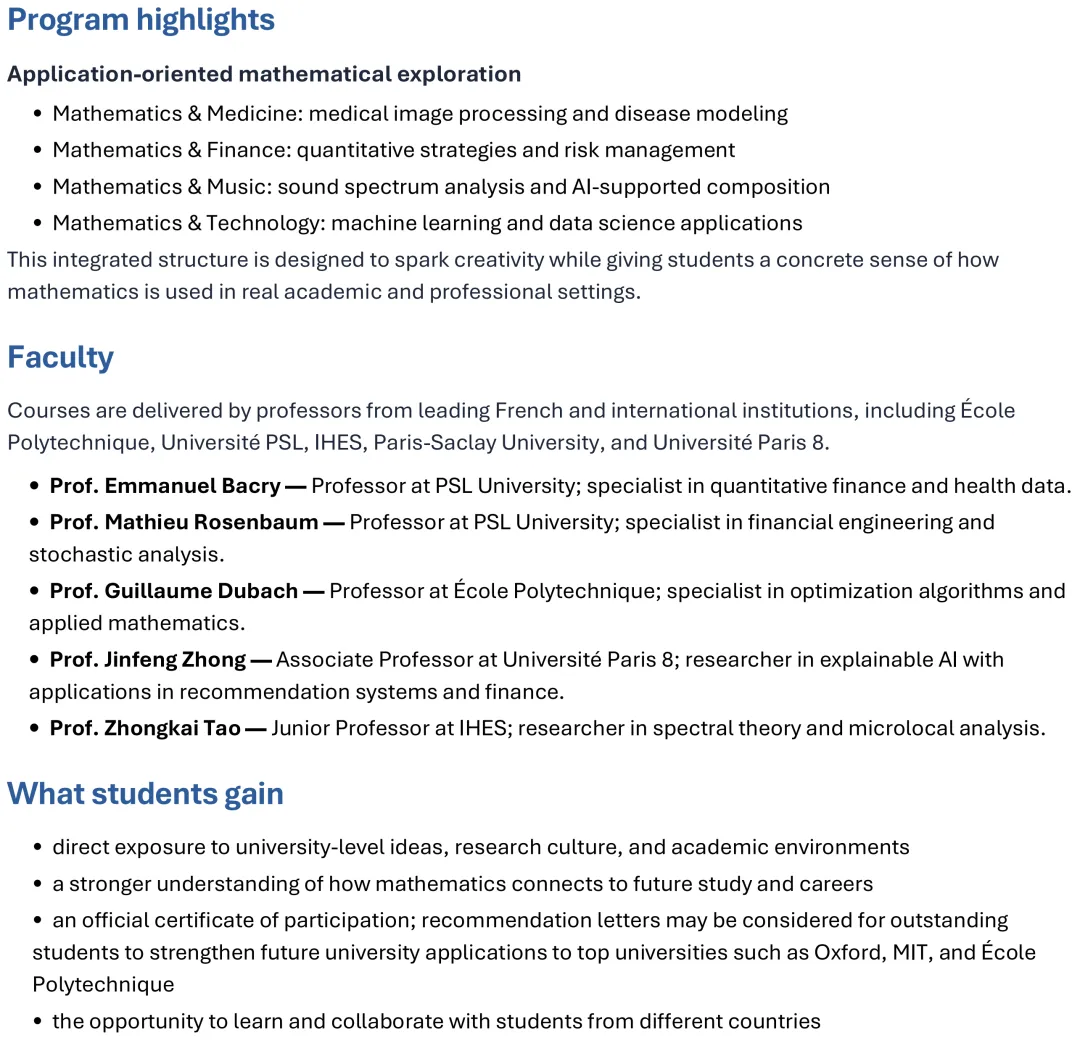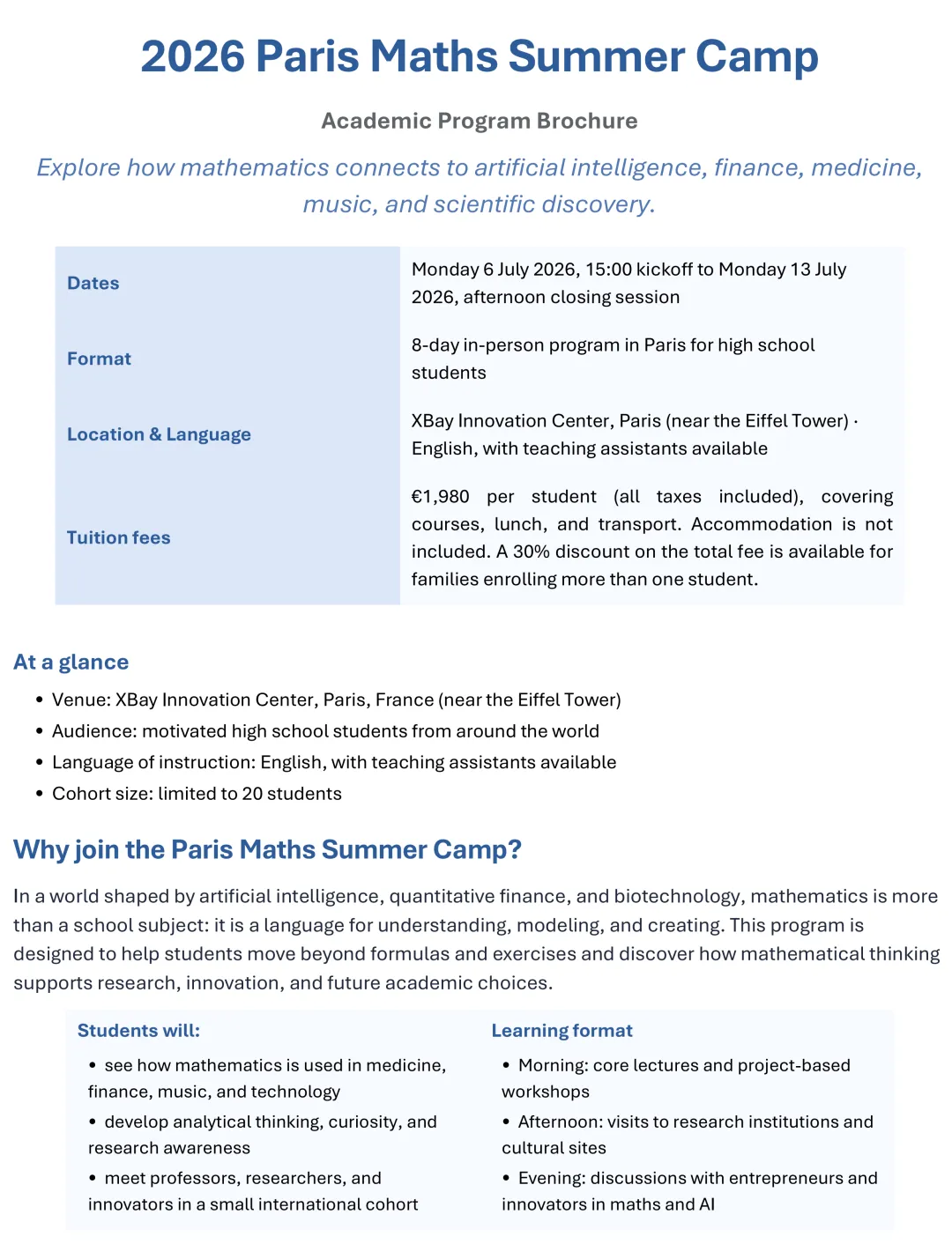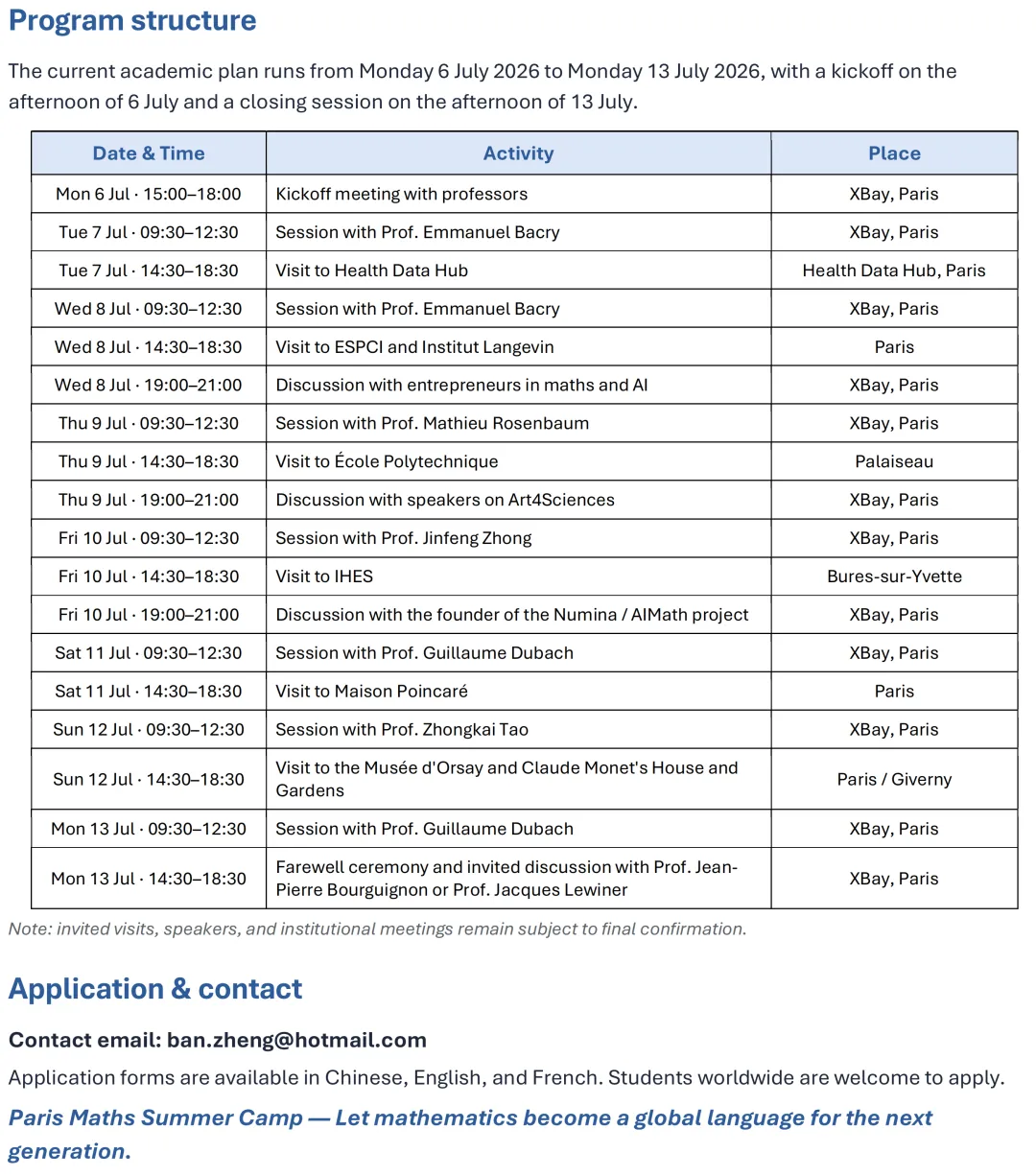 2026巴黎应用数学/AI国际夏令营|开启未来科学之门