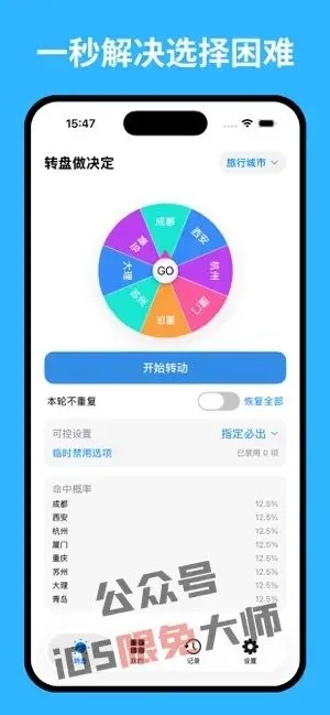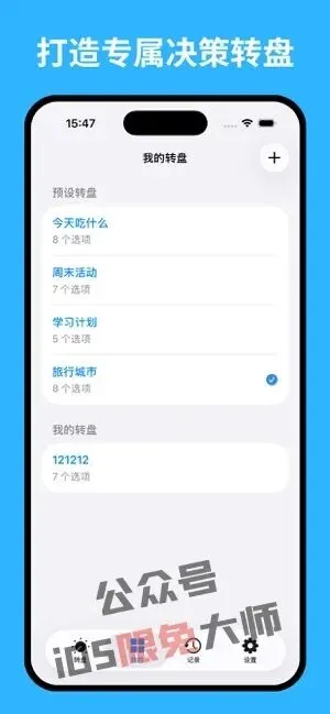 【转盘做决定】一款专注于“快速、可控、随机”的大转盘决定工具,帮助你在生活、学习、工作中更轻松地做出选择。